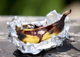 Preheat the oven to 375 degrees F. Make two slits along the length of the banana, cutting slightly into the flesh, but keep it attached at one end. Push the chocolate buttons of chocolate flake into the slit and cover with the skin. Wrap in foil. Keep it upright, and bake for 5-10 minutes until the chocolate has melted. Remove from foil and serve with yogurt.